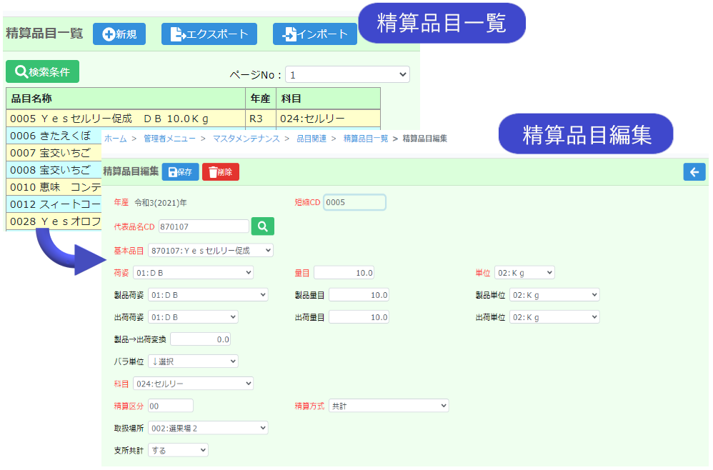 各種マスタデータの設定が可能